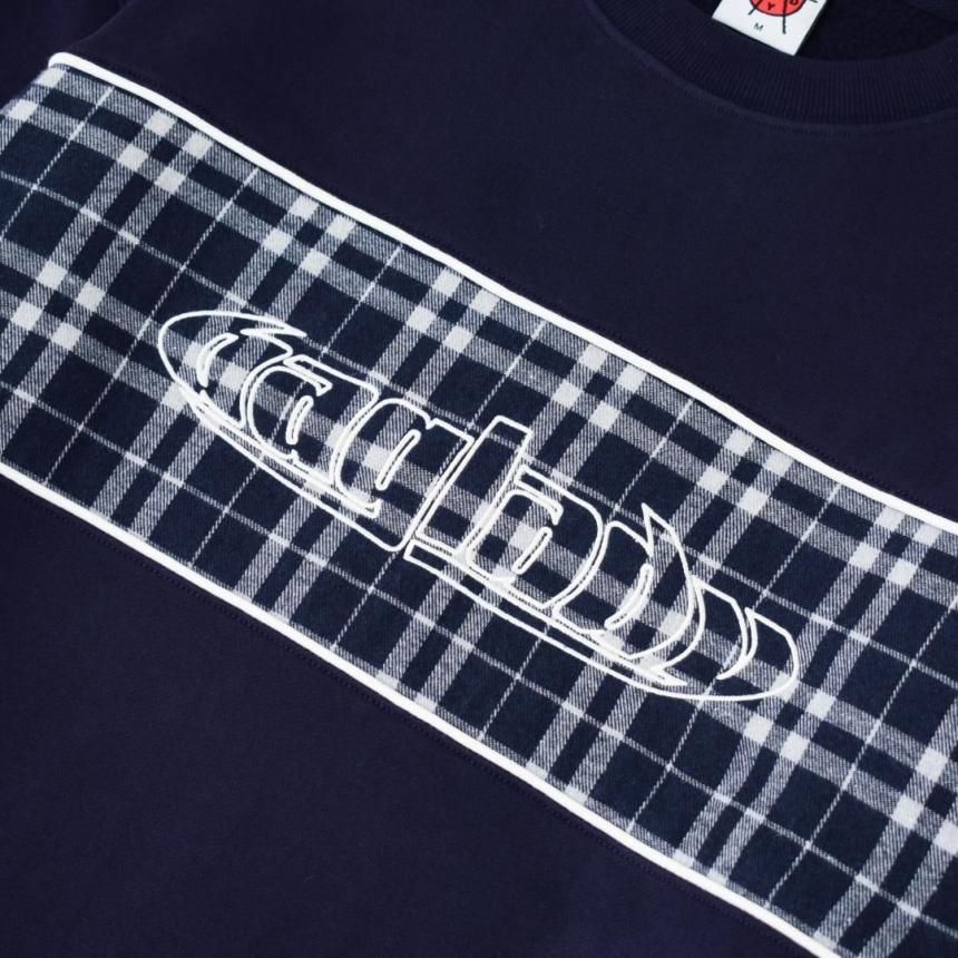 スウェット生地にチェック柄の切り返しデザインが特徴的な一枚。