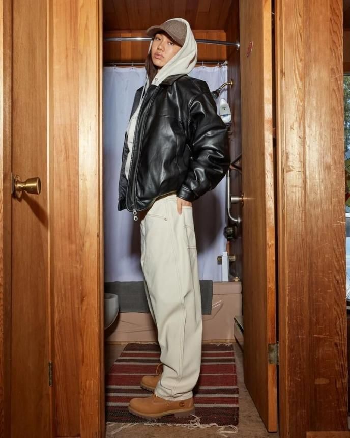 PUレザーを使用したレザージャケットは、バックに"Cursive Logo"と"Classic Logo"を掛け合わせたデザインの大判のデボス加工によるロゴが圧倒的な存在感を放つアイテム。