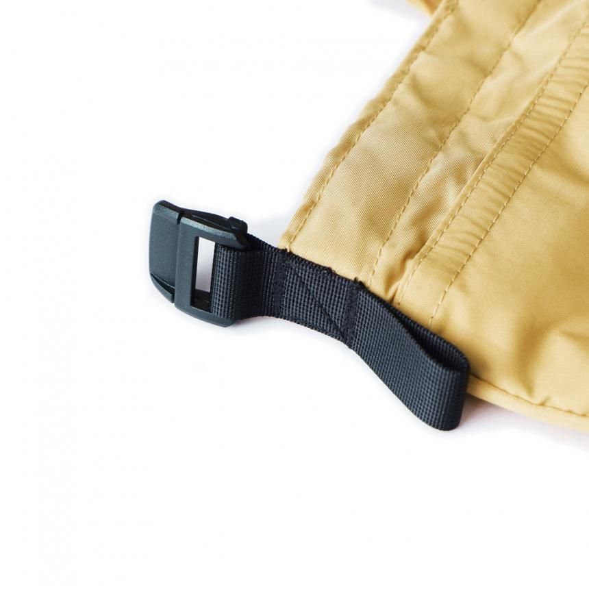ショルダーバッグで使用する際、付属のパラコードを腹部に回し、バッグを固定することも出来る機能性満載なアイテム。