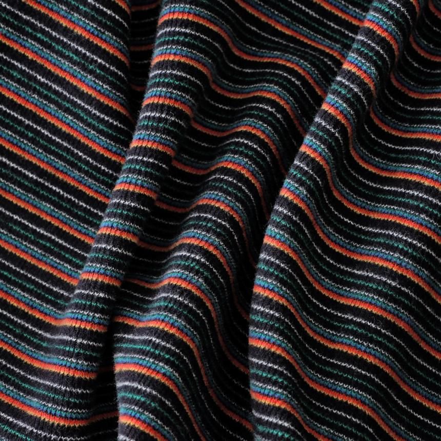 マルチカラーの細いピッチのボーダーデザインとタオル生地のような起毛した柔らかい肌触りのヘヴィーオンスな生地感が特徴的なロングスリーブTEE。