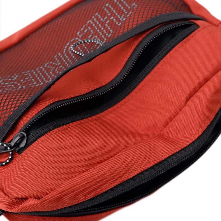 二つのポケットと外側のメッシュポケットが特徴的な小型のショルダーバッグ。