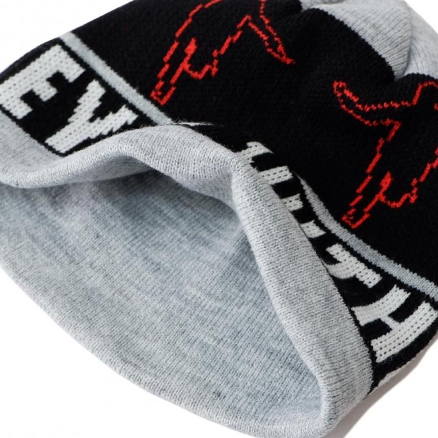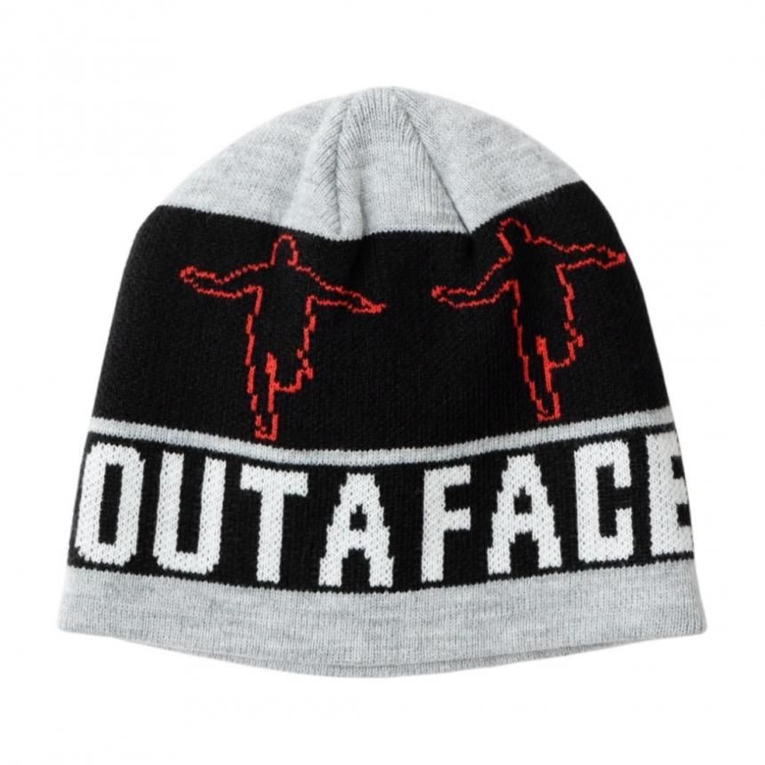 "Eyes Without A Face Beanie"の文字デザインと人型のモチーフが頭周りを一周した、ブランドの定番かつ人気のシングルビーニー。