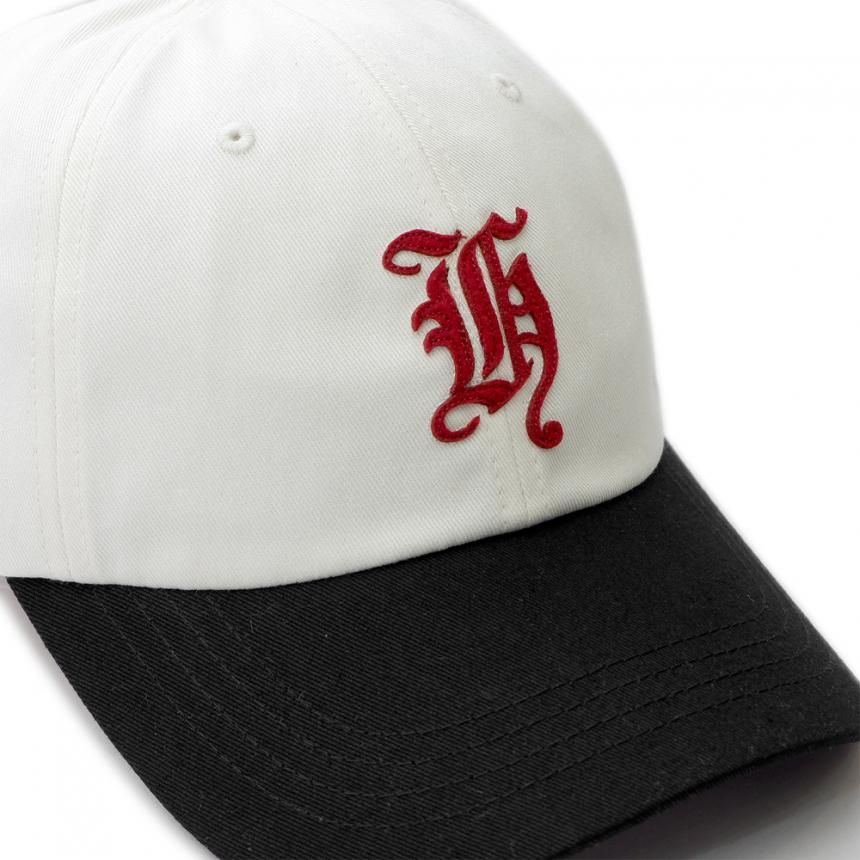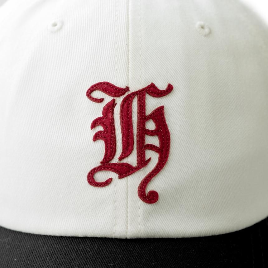 フロントにブランド頭文字の"H"のフェルトパッチが縫製された6パネルキャップ。