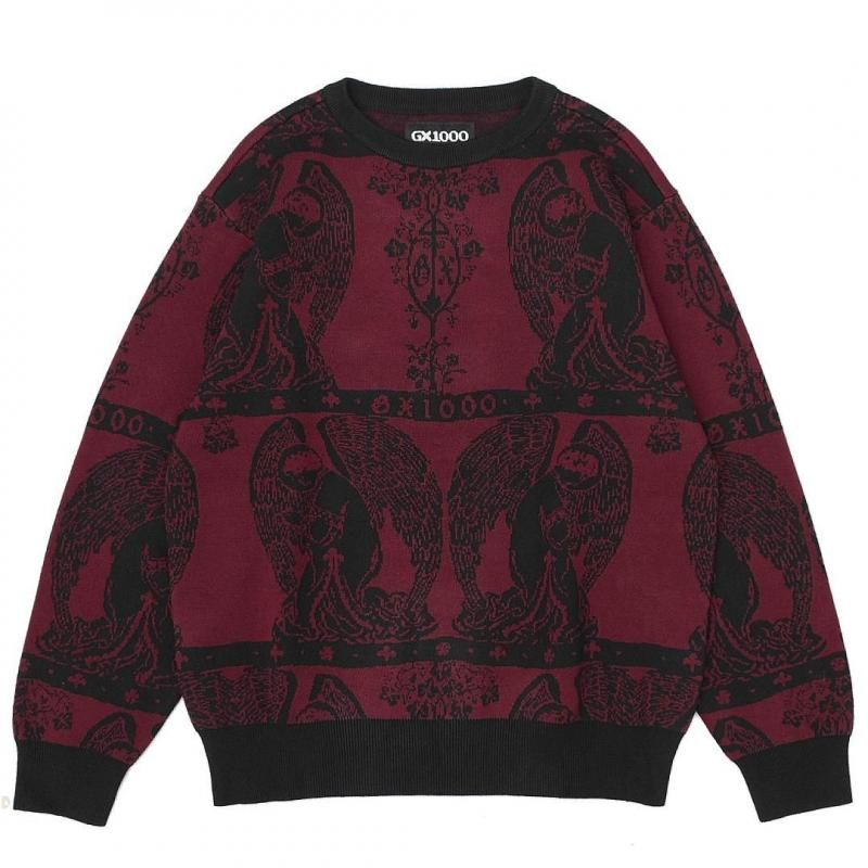 GX1000 JACQUARD KNIT ANGEL SWEATER / BLACK/MAROON (ジーエックスセン ニット/セーター)